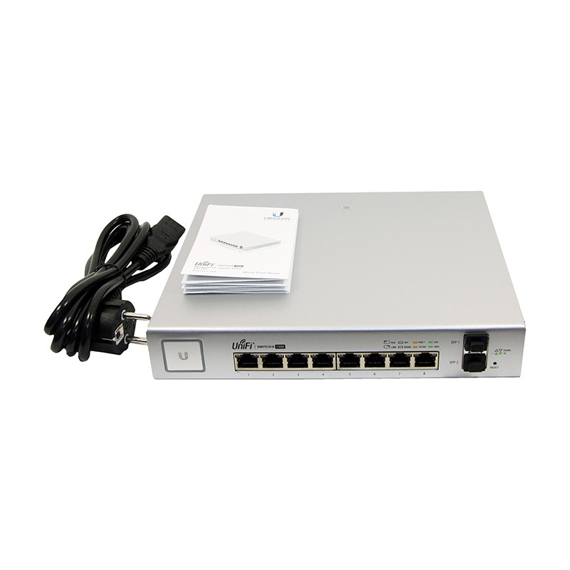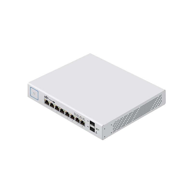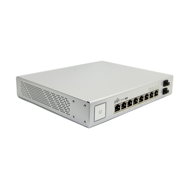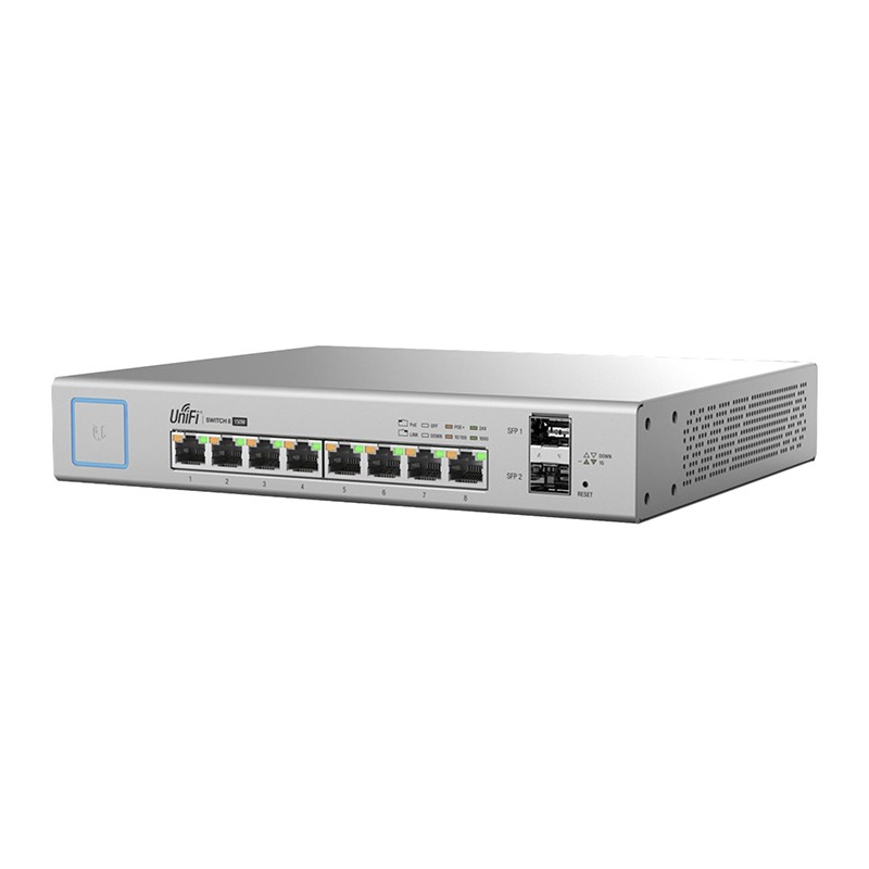 UniFi Switch 8-150W создан на базе высокопроизводительного процессора ARM Cortex-A9 с тактовой частотой 400 МГц. Пропускная способность портов — 20 Гбит/с, внутренняя пропускная способность коммутатора — 10 Гбит/с. На передней панели расположены 2 порта SFP для подключения оптических модулей и 8 гигабитных Ethernet-портов, способных осуществлять питание сетевых устройств с помощью технологии PoE. С помощью программного обеспечения коммутатора можно назначить на определенные порты принудительное питание 24В (Passive PoE) или питание по стандарту PoE 802.3at/af с автоматическим согласованием (при поддержке стандарта на стороне устройства-абонента).