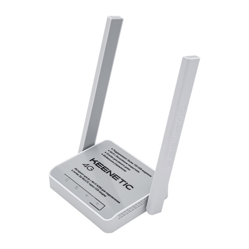 Keenetic 4G — это образцовый WiFi-роутер для небольших квартир, офисов и загородных домов. Устройство «раздает» беспроводную сеть на частоте 2,4 ГГц по стандартам 802.11b/g/n (до 300 Мбит/с). Также имеется возможность подключить проводные устройства через LAN-порты. Всего доступно 3 LAN-порта и один комбинированный порт WAN/LAN, к которому в случае необходимости может быть подсоединен кабель интернет-провайдера.