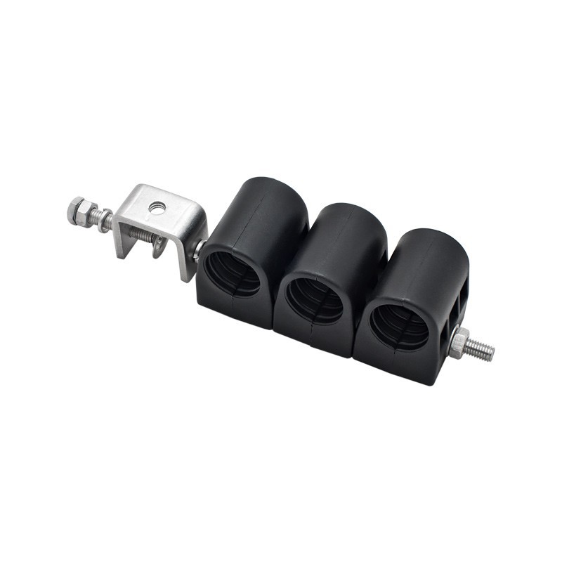 Крепление (подвес) для трёх кабелей диаметром 15-16мм на струбцине. Как правило, это коаксиальный фидер 1/2-дюйма.