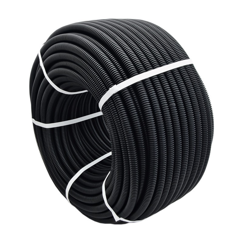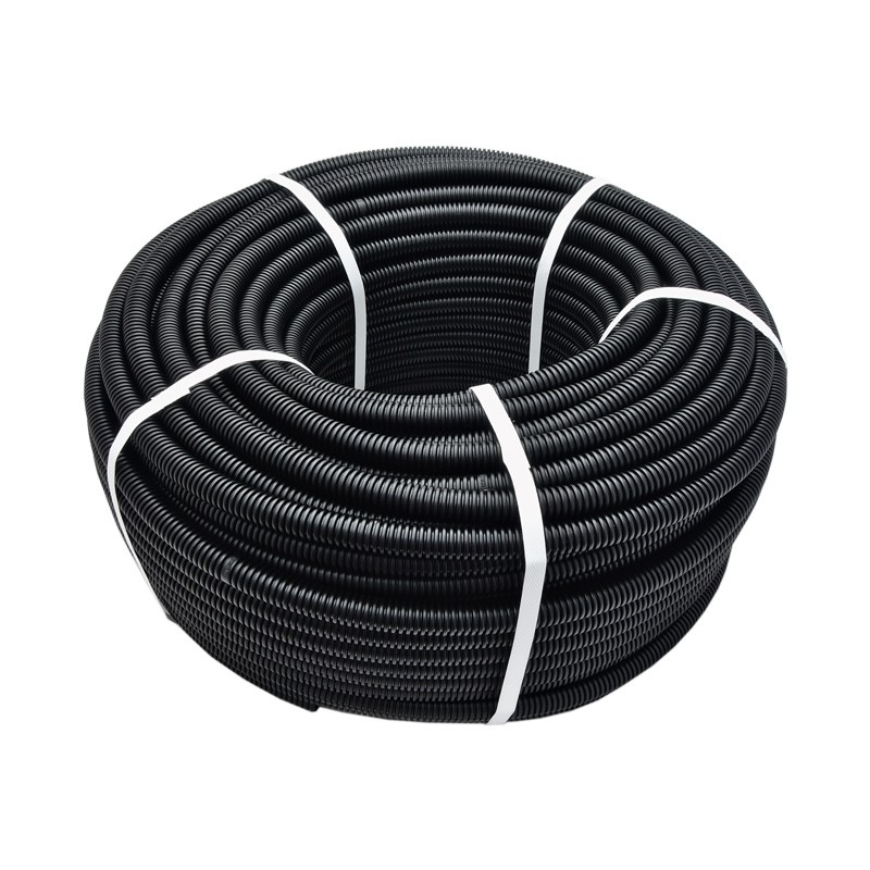 Гофрированная труба с внешним диаметром 20 мм и внутренним диаметром 14 мм, длина в бухте — 100 м. Отличается универсальностью применения, морозостойкостью и экологичностью. Подходит для открытой и скрытой прокладки ВЧ-кабелей всех популярных марок, включая 8D-FB и 10D-FB. Использование гофры защищает провода от неблагоприятных погодных воздействий и случайных повреждений. Протяжка кабеля упрощается благодаря наличию зонда (стальной проволоки) по всей длине гофры.