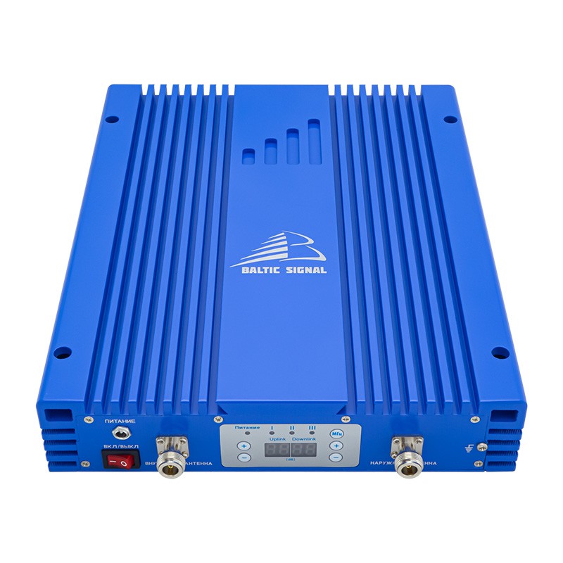 Модель Baltic Signal BS-3G/4G-40-33 имеет высокую выходную мощность в канале Downlink (2000 мВт, 33 дБм) и минимальную в канале Uplink (1 мВт, 0 дБм). Подобная конструкция предназначена для защиты репитера от перегрузки. Большая площадь покрытия — до 2000 м2 — предусматривает использование бустера с несколькими раздающими антеннами.