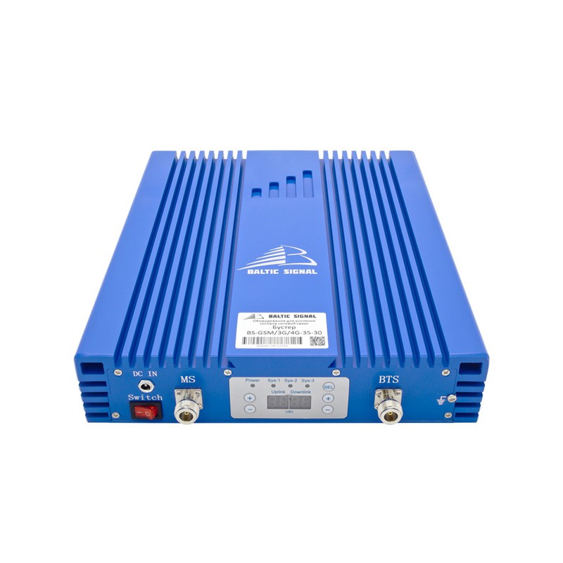 BS-GSM/3G/4G-35-30 — трехдиапазонный бустер от отечественной компании Baltic Signal для распространения усиленного сигнала на территории площадью 1500 м2. Устройство работает с популярными стандартами GSM-900, UMTS-2100 и LTE2600, что соответствует диапазонам частот 900, 2100 и 2600 МГц. Бустер осуществляет усиление только того сигнала, который исходит от основного репитера!