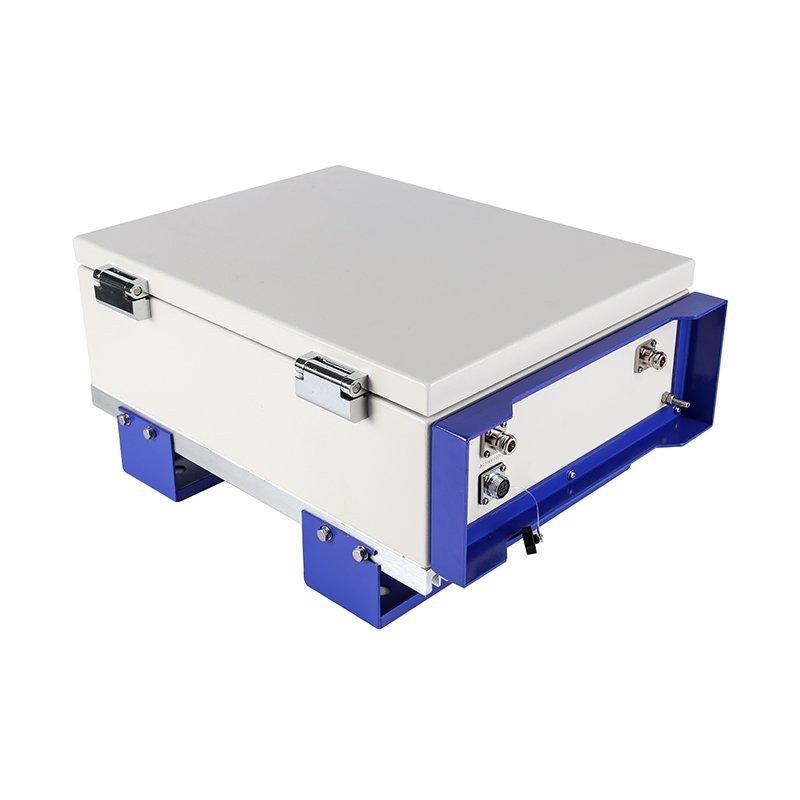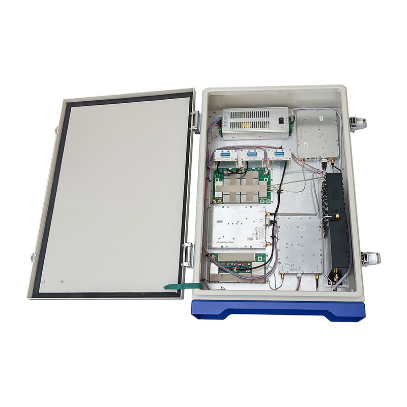 Прибор поставляется в массивном металлическом коробе с крышкой и стеновым креплением. Корпус защищен от пыли и влаги по стандарту IP65, поэтому может устанавливаться не только в помещениях, но и на улице. На корпус устройства выведены лишь антенные разъемы и кабель питания, а все средства управления спрятаны под крышкой, которая закрывается на ключ (защита от вандалов).