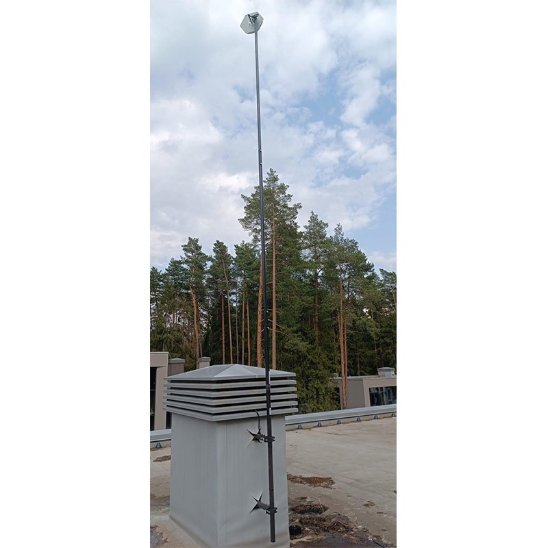 Благодаря телескопической конструкции мачта имеет компактный транспортировочный размер 225 см и 4 см диаметр.