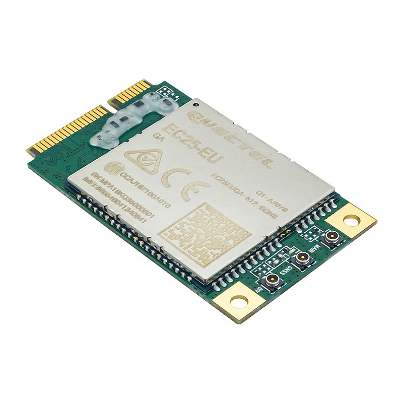 Модем Quectel EC25-EU в исполнении платы Mini PCI-e предназначен для использования в составе материнских роутеров, систем межмашинного взаимодействия (M2M) и промышленных устройств, требующих надежного подключения к мобильному интернету. Сотовый модуль EC25-EU от компании Quectel принадлежит классу устройств LTE Cat. 4 и может «разгоняться» до 150 Мбит/с. Имеется поддержка популярных частот сотовой связи, востребованных в сетях российских операторов.