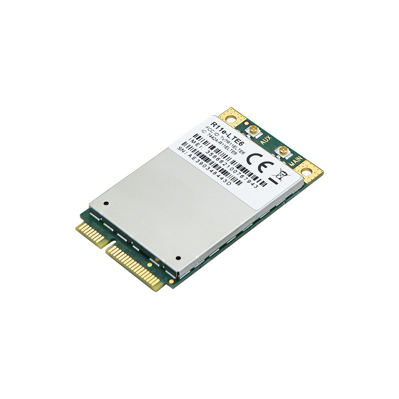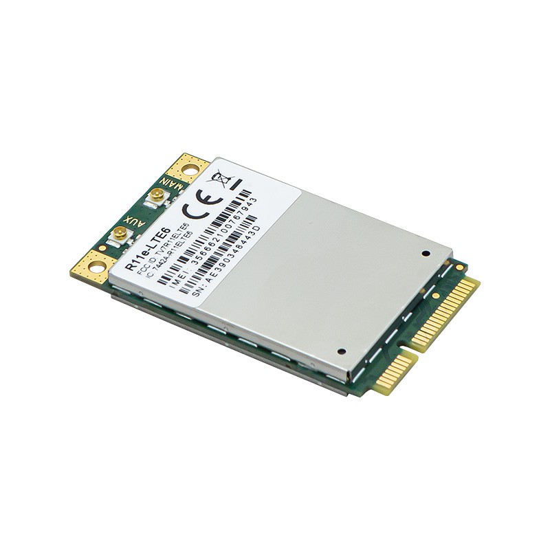 R11e-LTE6 — новая модель встраиваемого модема от MikroTik, поддерживающая работу в 4G-сетях на скорости до 300 Мбит/с. Как и другие модемы в формате miniPCIe, радиокарта MikroTik R11e-LTE6 не имеет собственного корпуса и предназначен для установки в корпуса роутеров и других устройств. Модемы формата miniPCIe часто применяются в промышленных автоматизированных системах, а также в самодельных роутерах и уникальных устройствах, предназначенных на решения специальных задач.