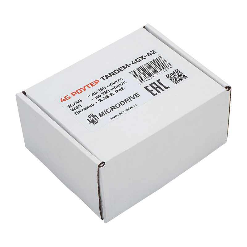 Роутер Tandem-4GX оснащен модемом, который поддерживает большинство российских сотовых сетей и может развивать скорость на загрузку до 150 Мбит/с (на отправку — до 50 Мбит/с). Обеспечена поддержка 4G-сетей на частоте 1800 МГц (Band 3), 2600 МГц (Band 7), 800 МГц (Band 20) и др. Если сигнал 4G полностью пропадет, модем самостоятельно переключится в сеть предыдущего поколения 3G или 2G/GSM.