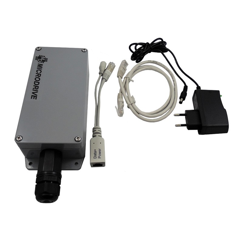 В комплект поставки включен PoE-инжектор, подключаемый к электрической розетке, роутеру и оборудованию пользователя. Если в распоряжении пользователя имеется коммутатор, поддерживающий стандарт Passive PoE (24–36В), допускается подключение роутера напрямую, без инжектора. Максимальная скорость передачи данных по LAN-порту роутера — 100 Мбит/с.
