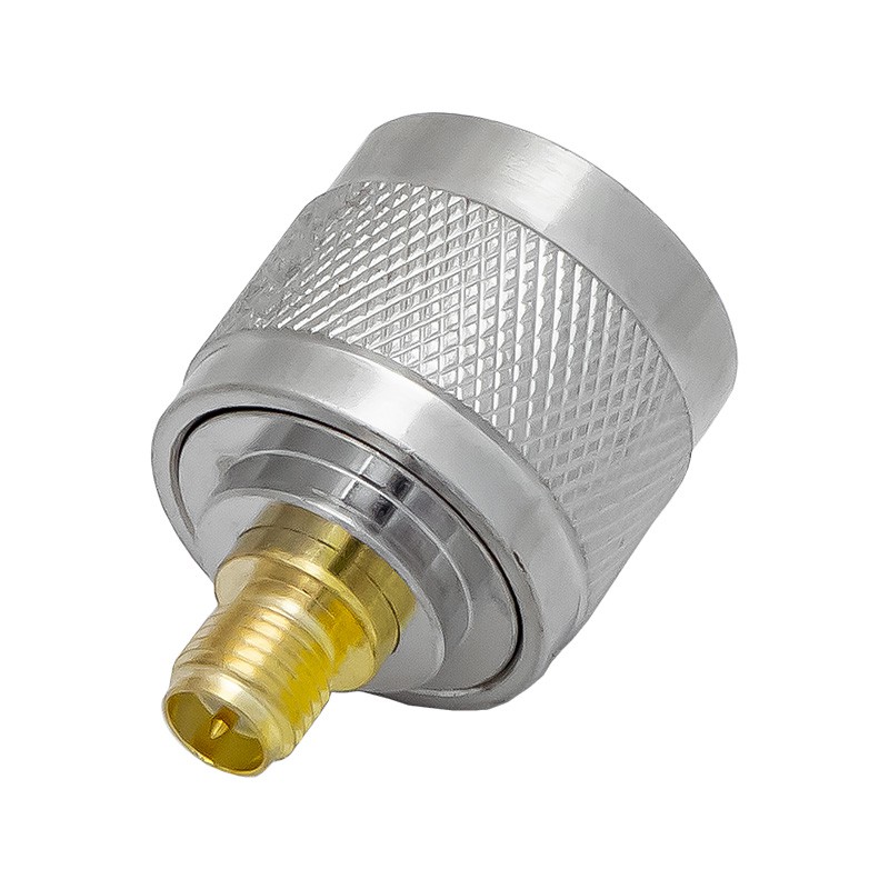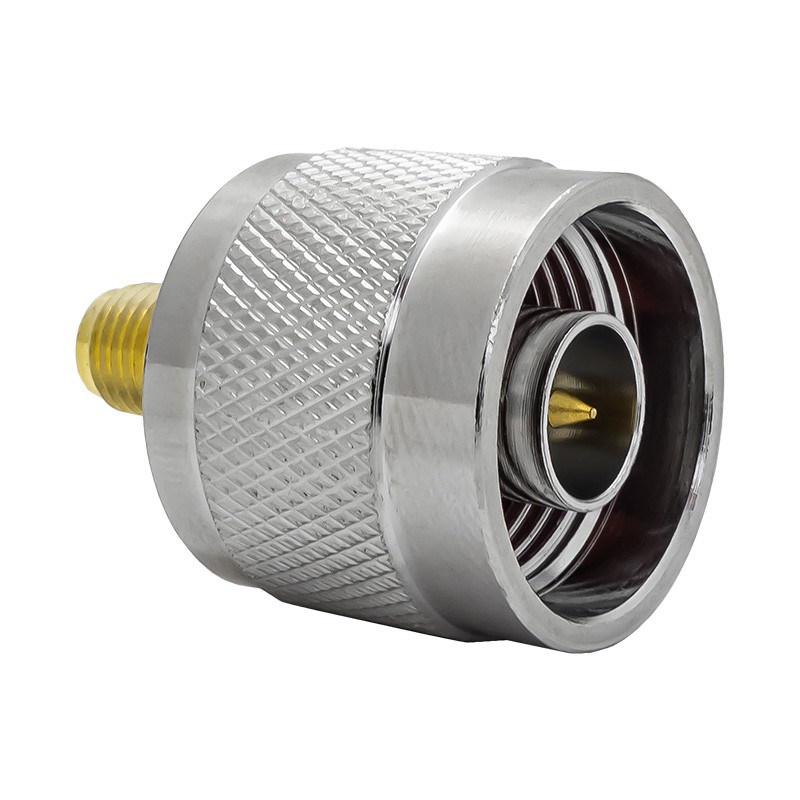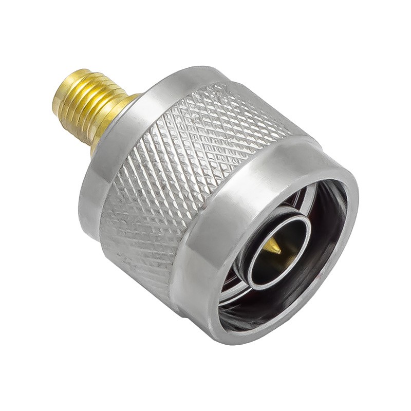 Высокочастотный переходник с разъемами N-male и RP-SMA-female, имеющий прямое исполнение и рассчитанный на волновое сопротивление 50 Ом.