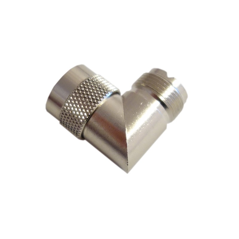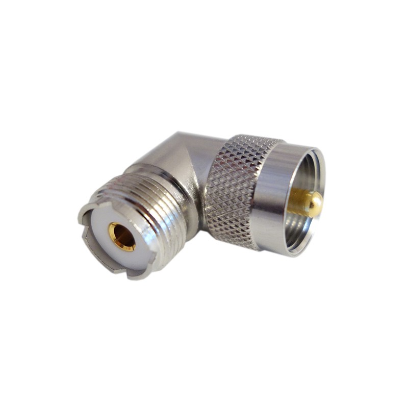 Угловой переходник (адаптер) U-412 применяется для соединения оборудования и кабелей с разъемами UHF-male («папа») и UHF-female («мама»). В военной промышленности вилка UHF имеет обозначение PL-259, а розетка — SO-239.