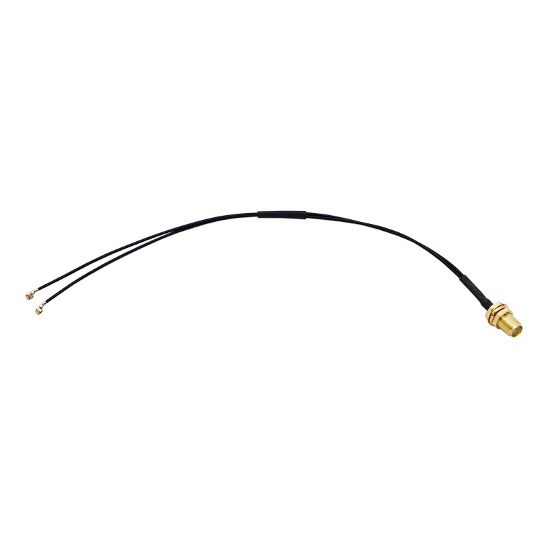Антенный адаптер (пигтейл) с разъема SMA-female на два низкопрофильных коннектора U.FL (IPX). Этот переходник используется для подключения двух модемов, исполненных на печатной плате, к одной антенне.