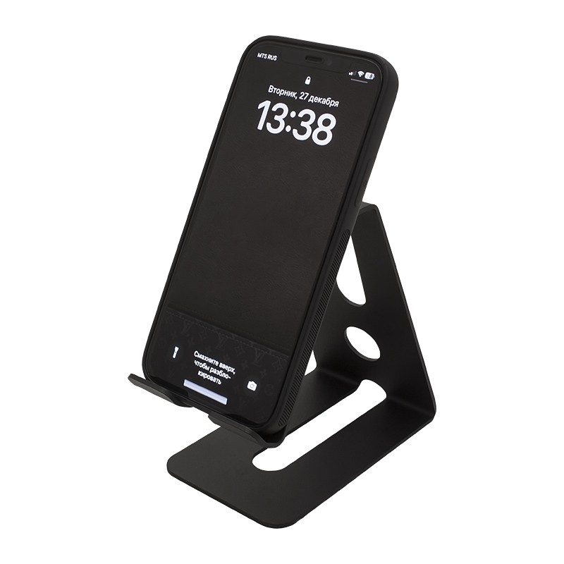 При помощи этого незамысловатого аксессуара пользователи могут с удобством читать текст с экрана смартфона или смотреть видео во время работы за столом или обеденного перерыва. Вес прибора таким образом распределяется на подставку, что она ни в коем случае не перевернется и не опрокинется. Специальные изогнутые «лапки» бережно охватывают грань вашего прибора, не повреждая и не царапая его.