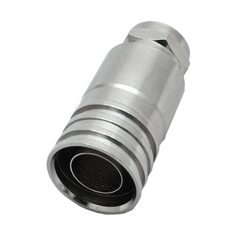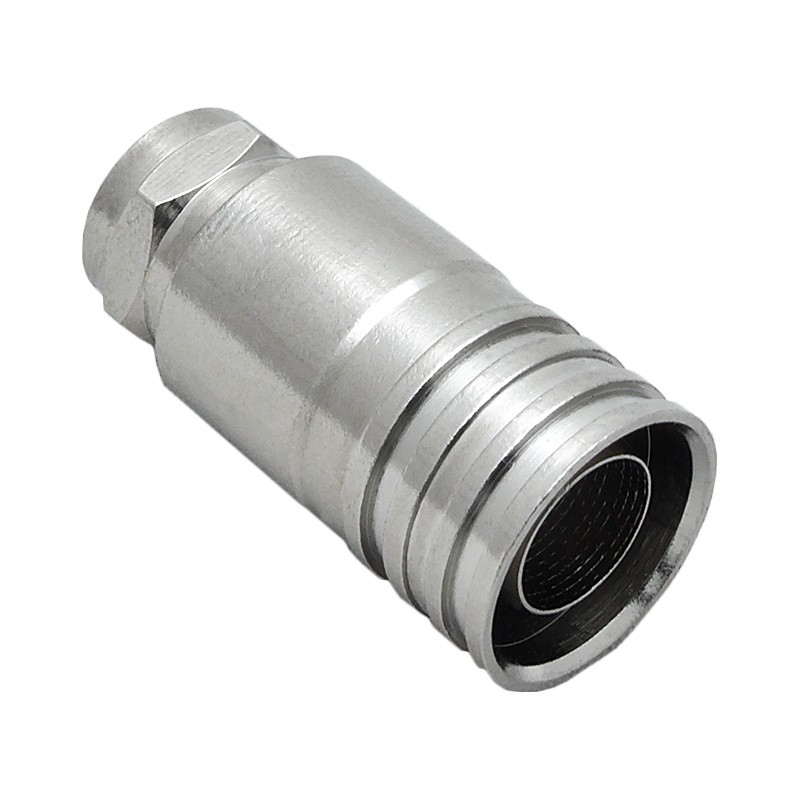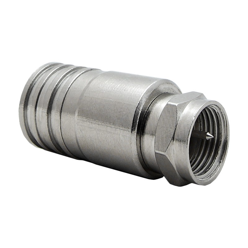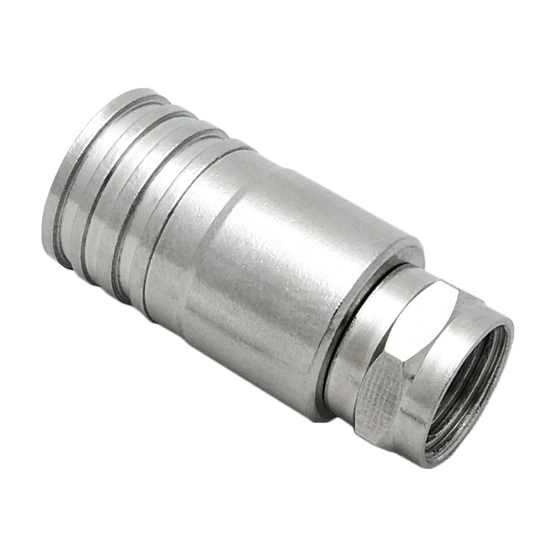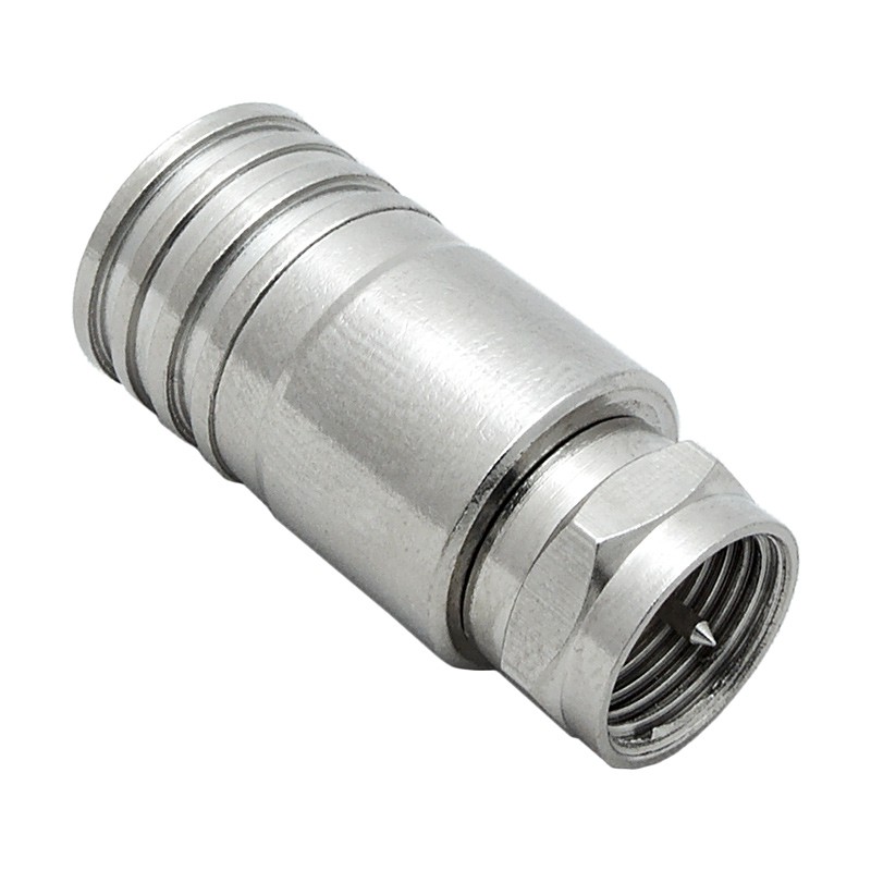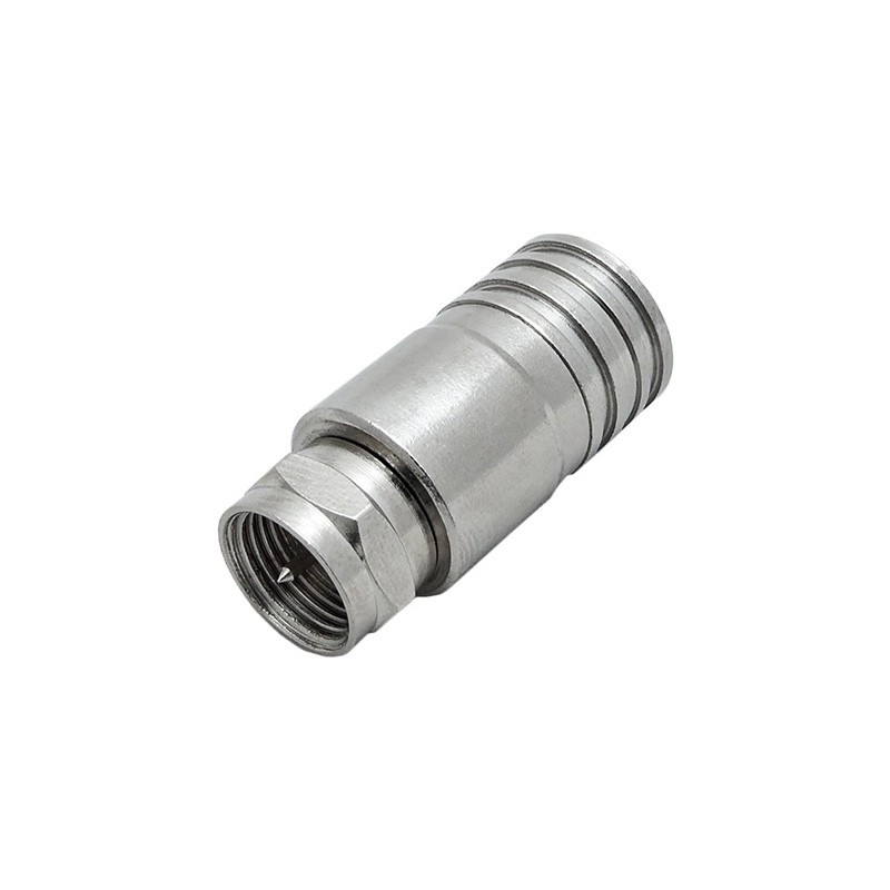 Телевизионный разъем F-male (вилка) обжимного типа, предназначенный для монтажа на коаксиальный кабель с диаметром внешней оболочки 10 мм. Этот разъем совместим с кабелем марки RG-11 (75 Ом), применяемым в сетях кабельного и спутникового телевидения в качестве магистрального кабеля. Поскольку разъем F-male не предназначен для использования на улице, при установке на уличную кабельную сборку потребуется его дополнительная герметизация.