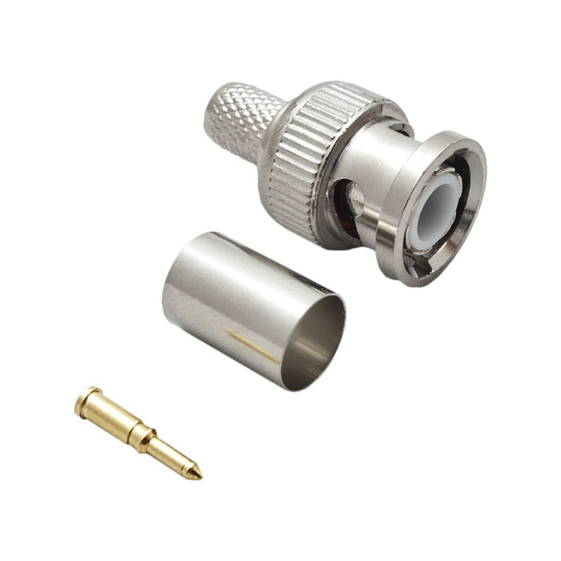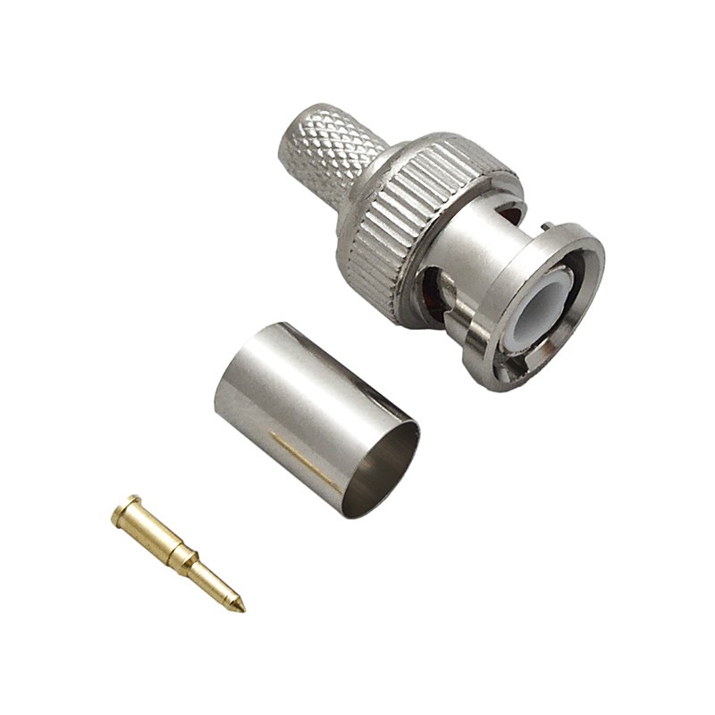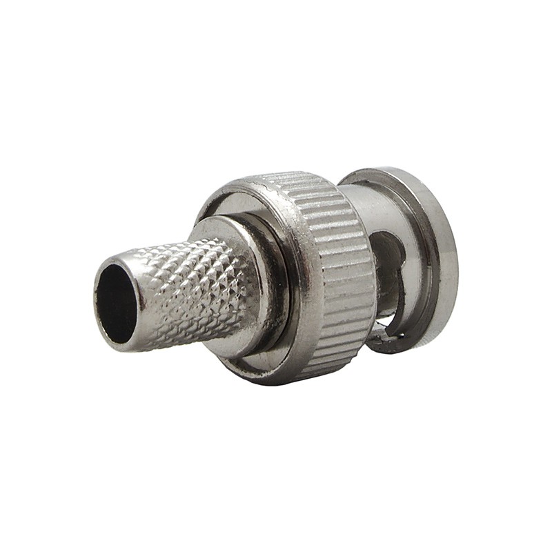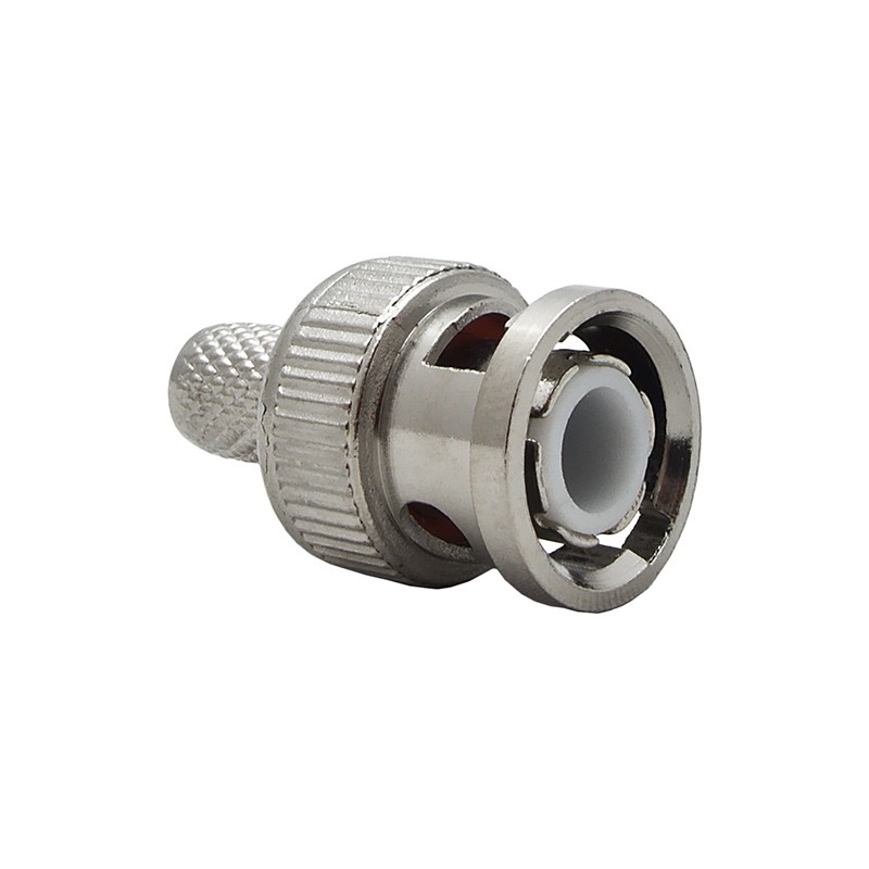 Коннектор BNC выполнен в прочном металлическом корпусе с поворотной фиксацией (байонет), обеспечивающей надежность соединения и защиту от механических повреждений. Штырь разъема напаивается на зачищенную центральную жилу кабеля. Использование штыря с золотым напылением гарантирует высокое качество контакта. Подбор клещей для обжима кабеля осуществляется строго по марке кабеля. Существует несколько видов и размеров клещей, что усложняет монтаж кабеля в домашних условиях и требует использования подходящего инструмента.