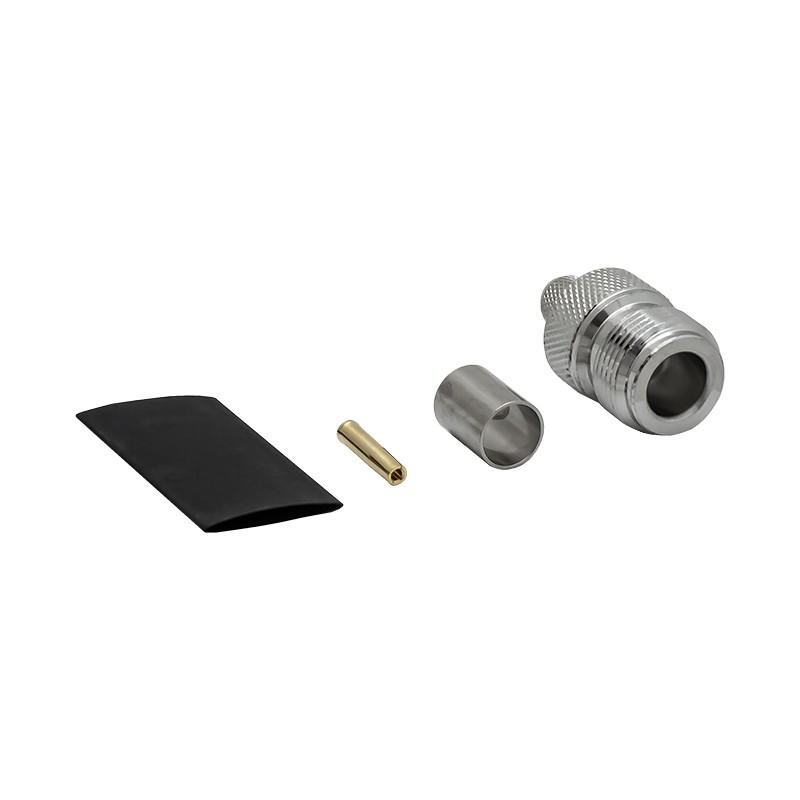 N-211/5D представляет собой обжимной разъем N-female («мама», розетка) для кабеля серии 5D-FB и аналогичных. Коннектор состоит из корпуса, центрального пина, гильзы и термоусадочной трубки. Для монтажа разъема на кабель потребуются специальные обжимные клещи и паяльный инструмент.