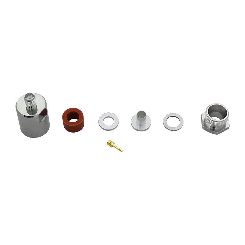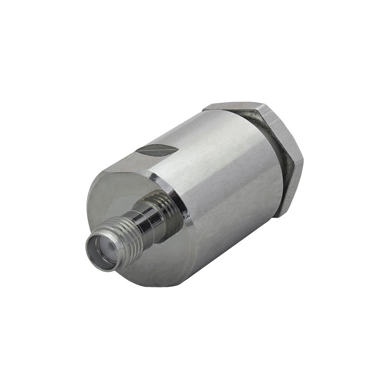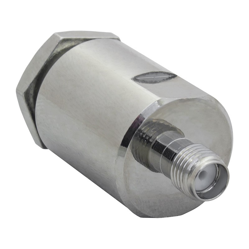 Прижимной коннектор SMA-female («мама») для установки на кабель марки 5D-FB и другие аналогичные коаксиальные кабели Ø7,5 мм. Разъем монтируется на провод при помощи прижимной втулки и, таким образом, не подразумевает использования обжимных щипцов. Центральный контакт (пин) устанавливается на жилу пайкой.