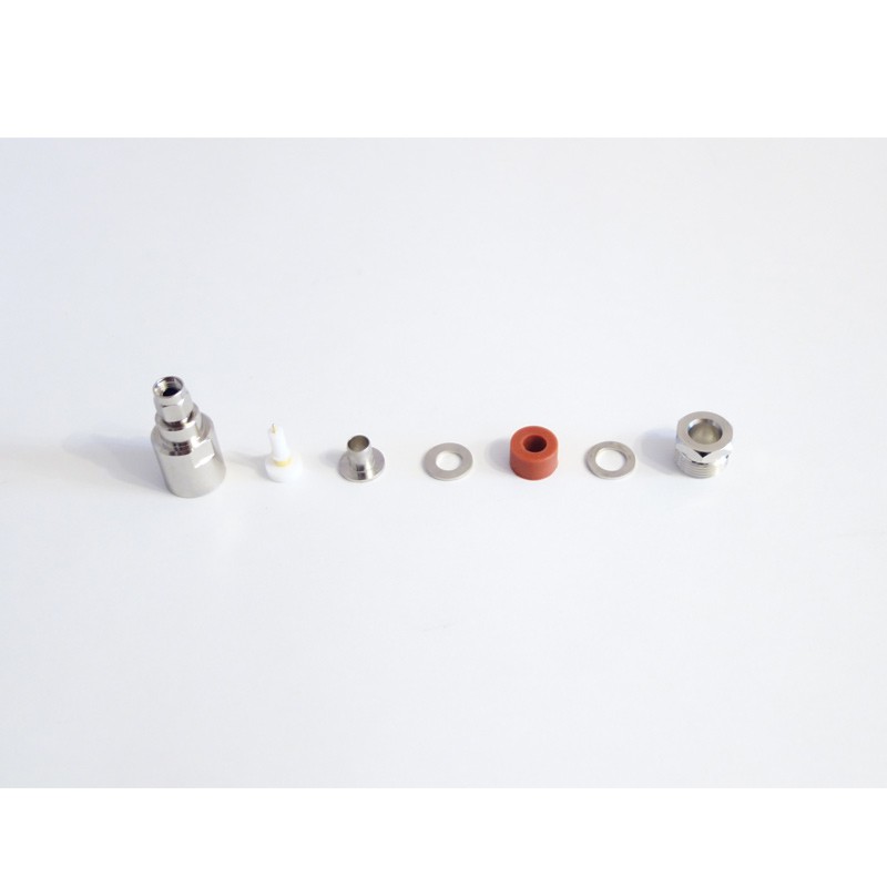 Данный разъем является прижимным: для монтажа оплетки кабеля не требуются обжимные клещи или другие специальные инструменты. Монтаж центральной жилы производится пайкой.