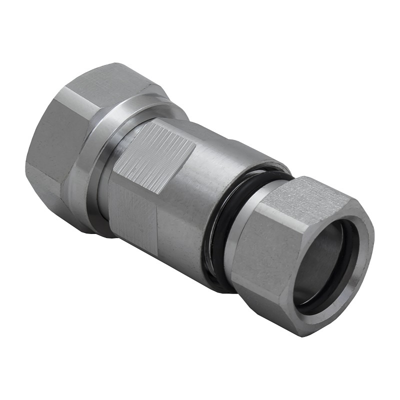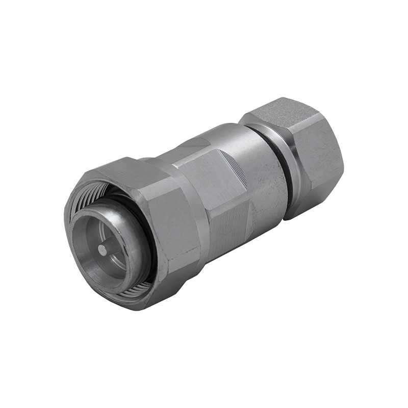 Коннектор имеет прямую конструкцию, установка на кабель осуществляется прижимным способом. Чтобы закрепить вилку на фидере, не требуется пайка центрального контакта или применение обжимного инструмента. Инженер может изготовить соединительный провод заранее или осуществить монтаж коннектора непосредственно во время выполнения работ на объекте.
