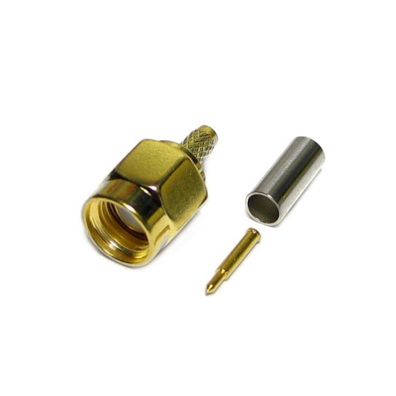Обжимной SMA-разъем типа штекер (вилка, папа, male) для коаксиального кабеля диаметром 1.5 мм и центральной жилой 0.5 мм.