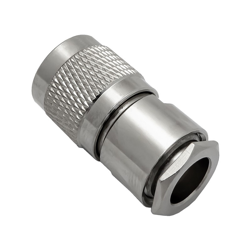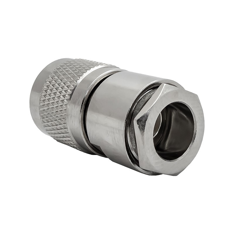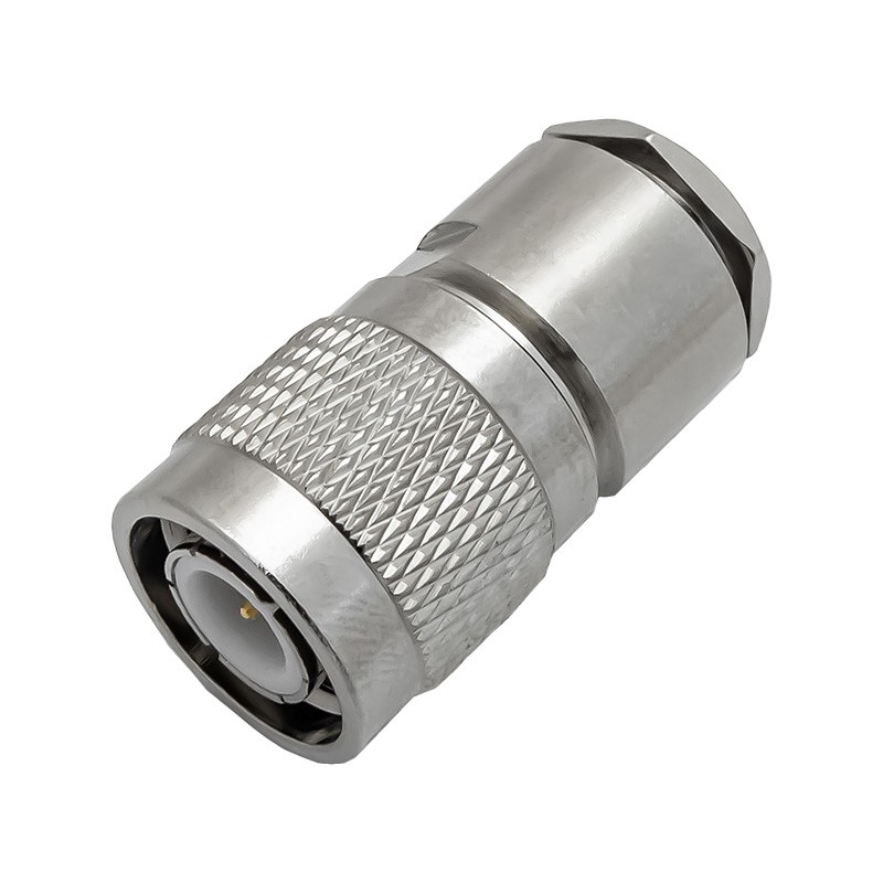 Разъем TNC-male («вилка») прямого исполнения для коаксиального кабеля 5D-FB и аналогов соответствующего диаметра. Прижимная конструкция коннектора не требует использования обжимных клещей при установке на провод. Монтаж центральной жилы осуществляется посредством пайки.