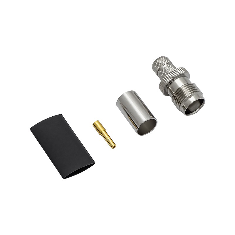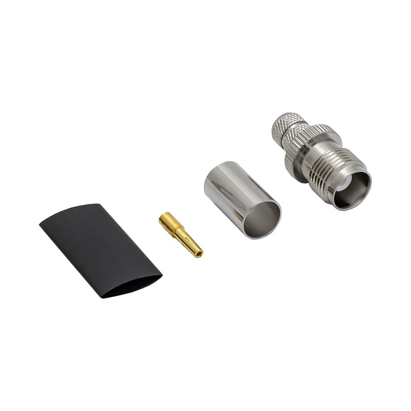 Коннектор TNC-female («кабельная розетка») прямого исполнения для коаксиального кабеля марки 5D-FB или аналогичного. Установка разъема осуществляется при помощи обжимных клещей. Центральная жила кабеля должна быть припаяна к центральному контакту разъема.