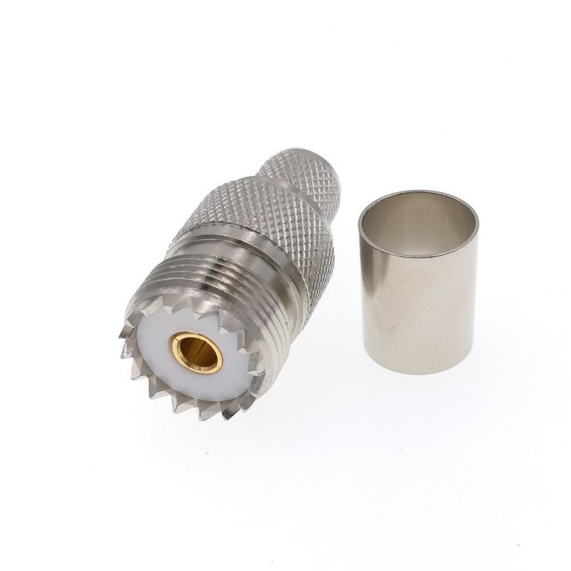 U-211/8D — обжимная UHF-разъём SO-259 для кабеля 8D-FB, CNT-400, LMR-400 и аналогов. Волновое сопротивление 50 Ом. Для раций.