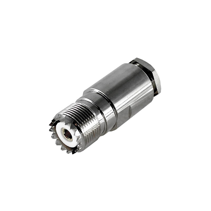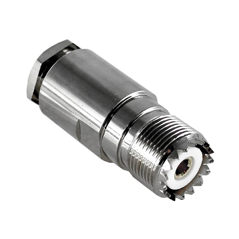U-212B — прижимная розетка SO-259 (UHF-female) для кабеля RG-213, 8D-FB, CNT-400, DX-1000 и аналогов. Волновое сопротивление 50 Ом. Для радиосвязи.