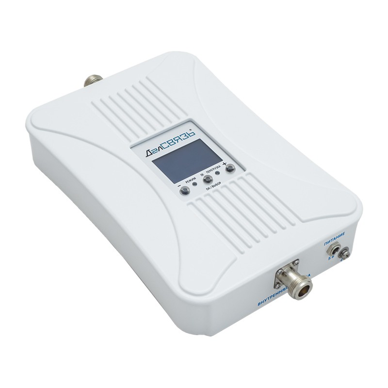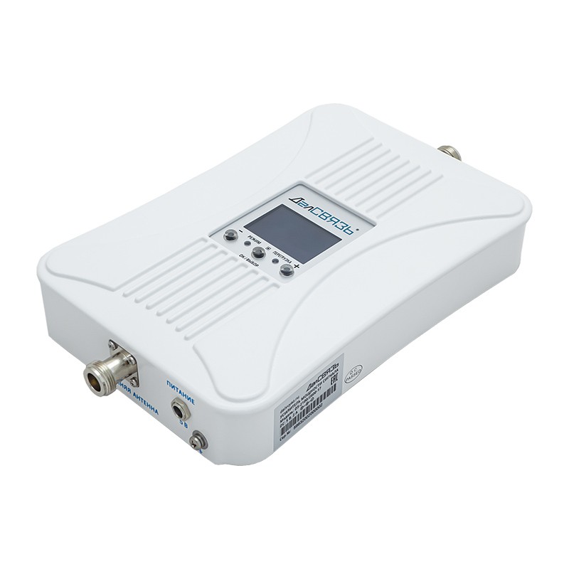 Комплектный репитер DS-2100/2600-17 усиливает сигнала на 70 дБ и имеет выходную мощность 50 мВт. Высокие технические характеристики и качественные комплектующие позволяют распространить сотовый сигнал в зданиях и сооружениях площадью до 200 м2, расположенных на удалении 5–15 км от базовых станций. Наличие ЖК-экрана с индикацией уровня сигнала существенно упрощает настройку оборудования.