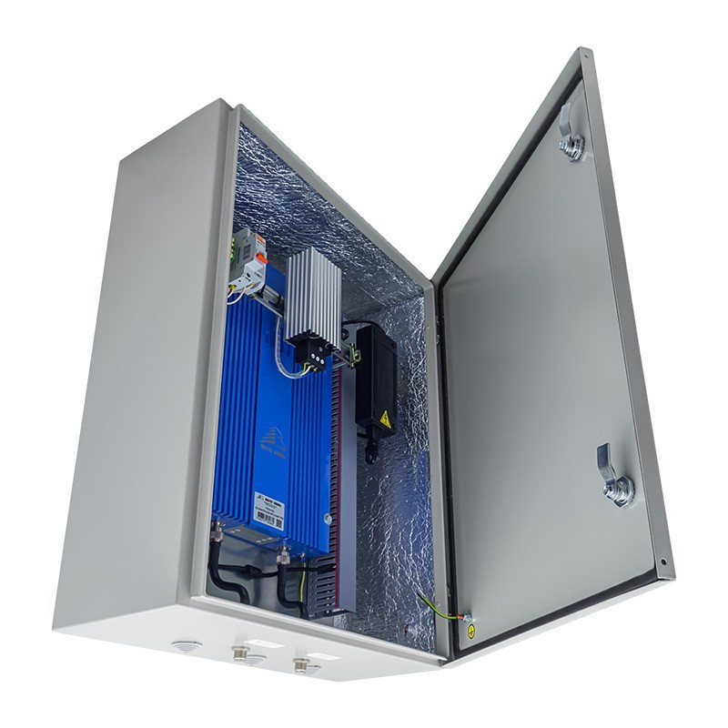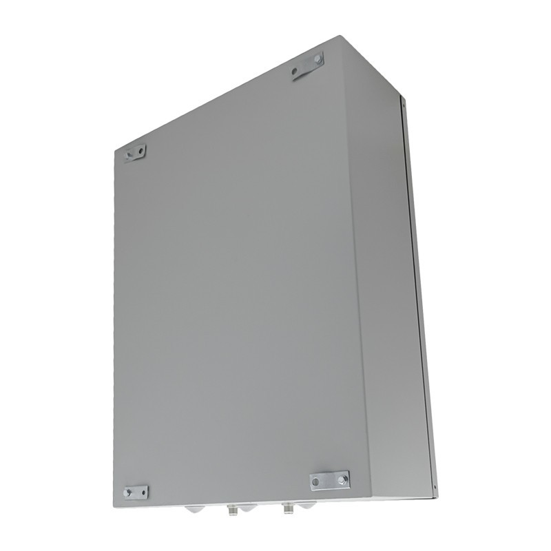 Дверца бокса закрывается на ключ, что обеспечивает антивандальную защиту. На внешнем корпусе размещены порты N-female для подключения антенных кабельных сборок. Кабель питания прокладывается через герметичную заглушку и подключается к клеммам электрического автомата. Аппарат может быть установлен на столб с помощью комплектного набора крепежа.