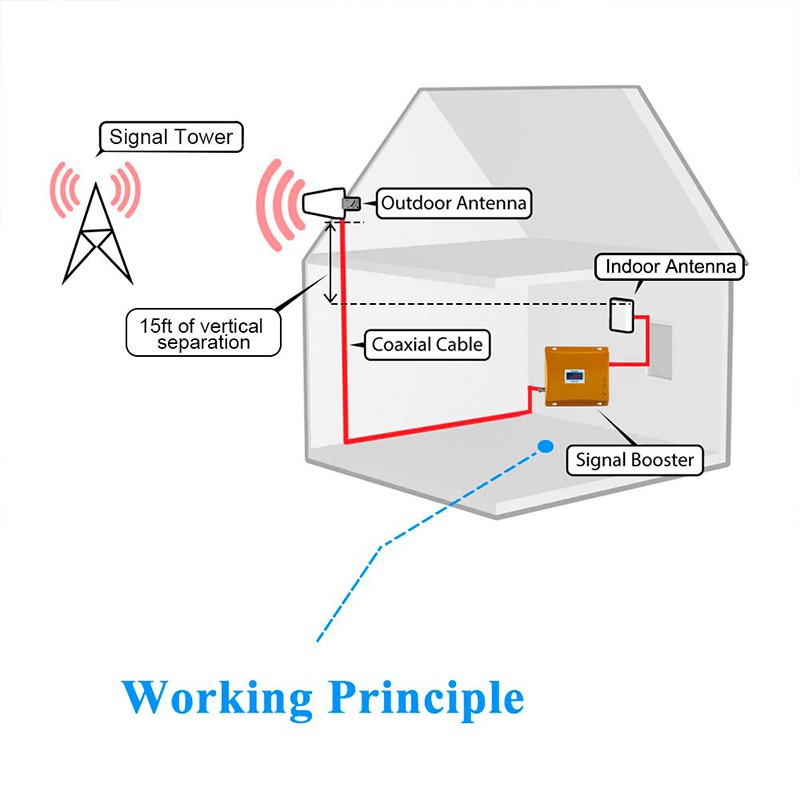 Небольшой корпус подходит для установки в отдельной подсобке и незаметного монтажа в гостевых зонах. На торцах предусмотрено четыре крепежных отверстия под саморезы для надежной фиксации в вертикальной и горизонтальной ориентации. Автоматическая регулировка мощности защитит неопытного пользователя от перегрузки усилителя. Светодиоды и ЖК-дисплей позволяют отслеживать текущее состояние системы усиления в режиме онлайн. Дополнительно к репитеру в набор включен блок питания.