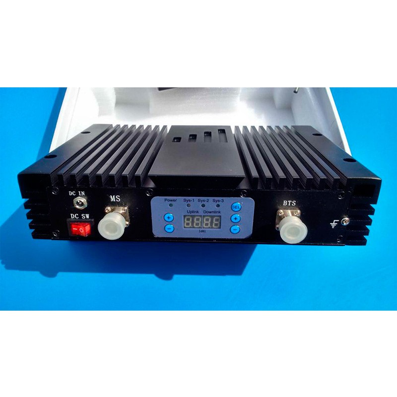 Устройство автоматически определяет уровень усиления (коэффициент 70–75 Дб), поддерживая мощность на оптимальном уровне. Также доступна ручная регулировки коэффициента усиления. Аппарат оборудован небольшим экраном, на который выводится вся информациянеобходимая для настройки прибора.