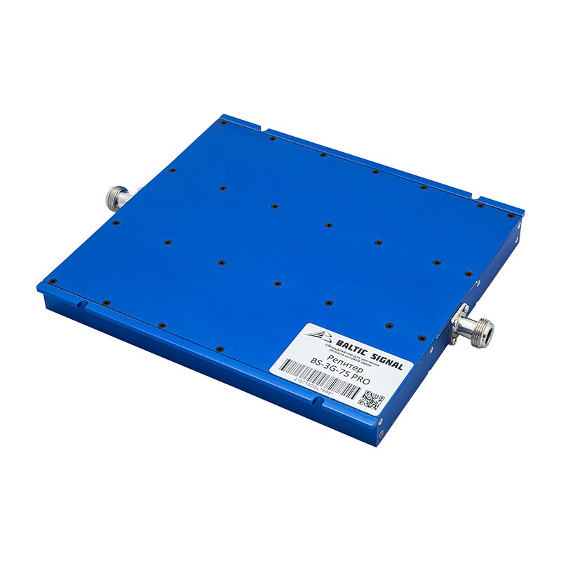 BS-3G-75 PRO — производительный однодиапазонный 3G-усилитель сотовой связи стандарта UMTS-2100. Коэффициент усиления до 75 дБ и высокая выходная мощность 640 мВт позволяют эффективно обрабатывать даже слабый сигнал от станции оператора и ретранслировать уверенное покрытие 3G-связи и интернета в помещениях площадью до 600 м2. Репитер выпускается российским предприятием Baltic Signal.