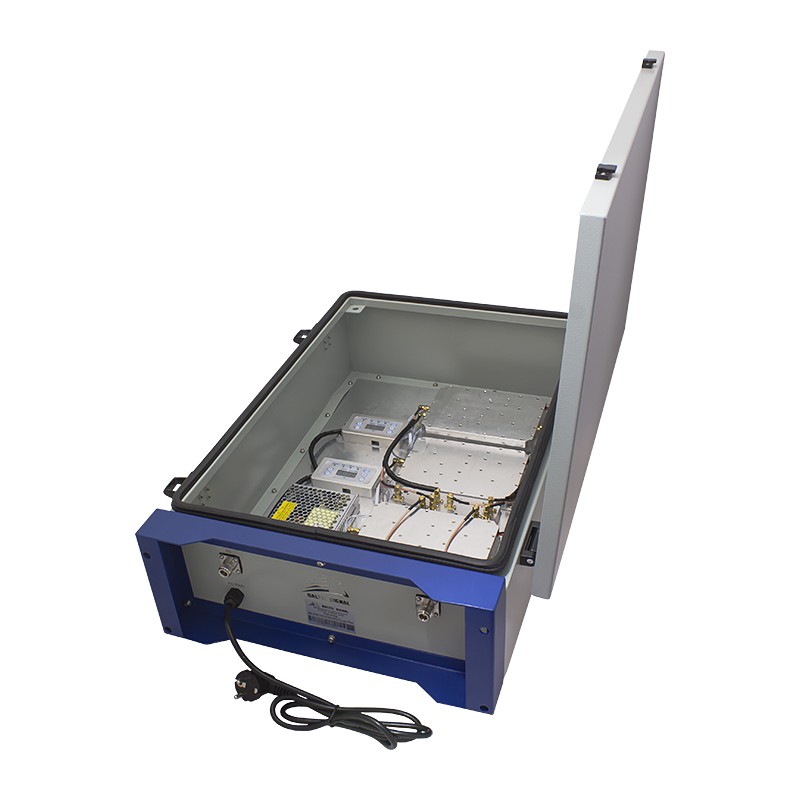 Особенностью репитера является его всепогодное исполнение. Все электронные компоненты размещены в металлическом боксе, который защищен от пыли и влаги по стандарту IP65. Дверца корпуса имеет замок, который предотвращает несанкционированный доступ к репитеру третьих лиц и повышает антивандальную защиту. Допускается использование репитера на улице при температурном режиме от -40°С до +55°С. Таким образом, модель BS-GSM/DCS/3G/4G/LTE-80 PRO может свободно применяться для усиления связи на открытых площадках и придомовых территориях.