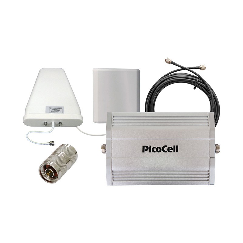 Основным усиливающим прибором является репитер PicoCell 1800 SXB+. Благодаря коэффициенту усиления 65 дБ, он успешно обрабатывает даже слабый входящий сигнал и создает зону уверенного приема на площади до 200 м2.