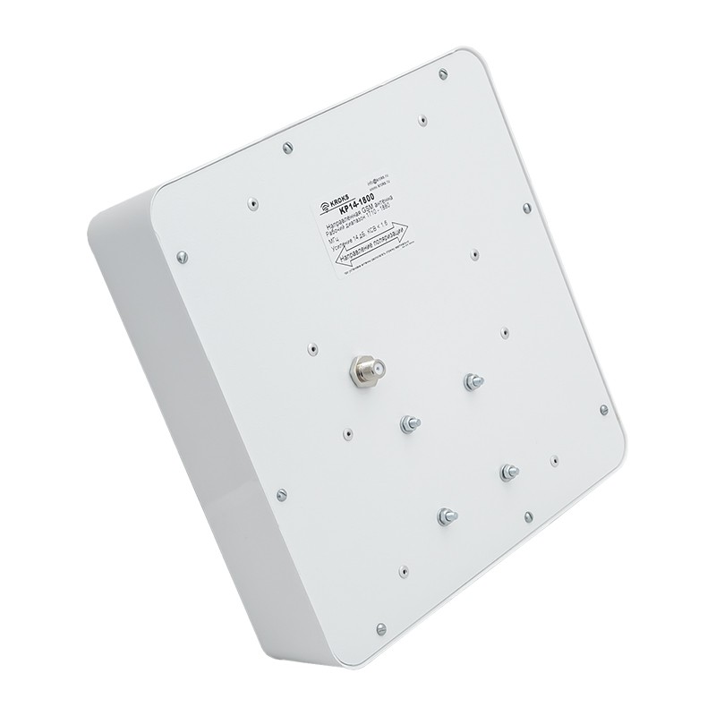 - Направленная антенна KP14-1800F устанавливается на улице и отвечает за обмен ВЧ-сигналом между репитером и антеннами базовой станции. Коэффициент усиления 14 дБи позволяет принять ослабленный сигнал от удаленного источника. Для подключения кабеля снижения используется разъем F-female.