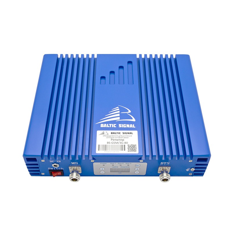 BS-GSM/3G-80 — одна из наиболее мощных моделей Baltic Signal для одновременного усиления частотных диапазонов 900 и 2100 МГц. Коэффициент усиления BS-GSM/3G-80 составляет 80 дБ по направлению к телефону (Downlink) и 75 дБ по направлению к базовой станции (Uplink). Мощности устройства (30 дБм, 1000 мВт) достаточно для обеспечения покрытия до 1500 м2 при уверенном входном сигнале. Данная модель обычно применяется на крупных объектах: в частных домах, бизнес-центрах, торгово-развлекательных комплексах, на заводах и полигонах.
