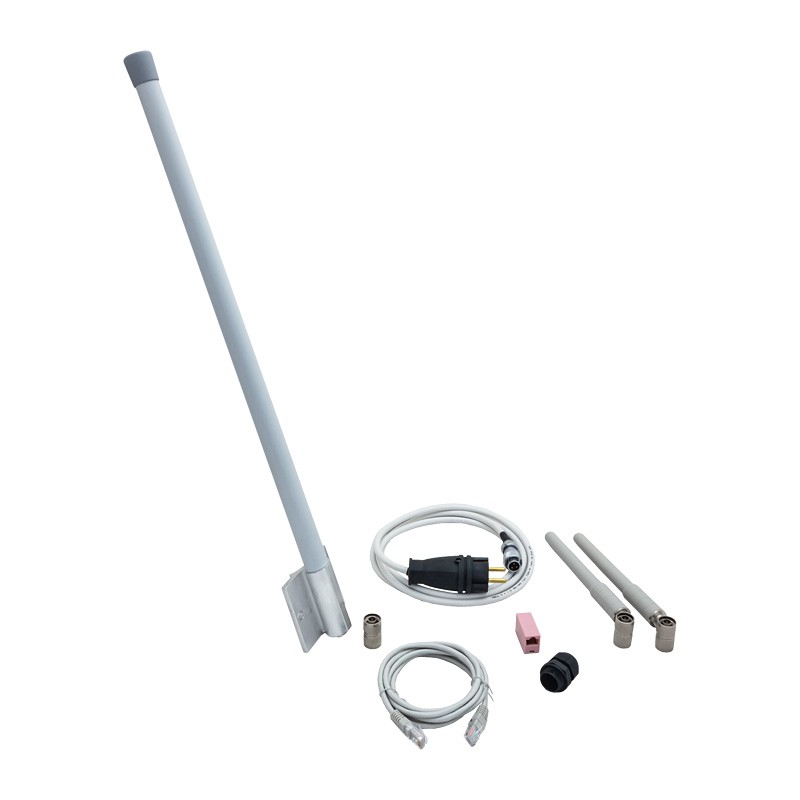 Интернет-станция поставляется с двумя штыревыми антеннами для приема и передачи сигнала сотовой связи. Антенны подключаются с помощью комплектных переходников и реализуют схему подключения MIMO 2x2, при которой данные в 4G-сетях передаются в двух независимых потоках. При необходимости штыревые антенны могут быть заменены на более производительные варианты (см. раздел Опции).
