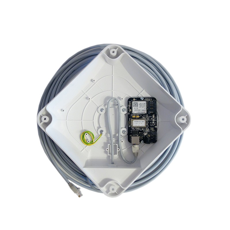 Совмещение роутера и внешней антенны в одном корпусе позволяет существенно снизить затухание сигнала, поскольку в такой конфигурации отпадает необходимость в использовании многометрового коаксиального кабеля. Передача данных к конечному устройству — компьютеру, коммутатору или другому маршрутизатору — осуществляется по обычному Ethernet-кабелю (витая пара), длина которого может достигать 100 м.