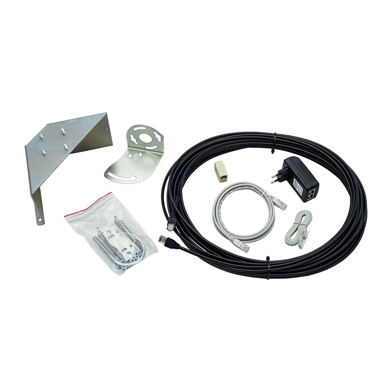 Питание к оборудованию подается через единый Ethernet-порт по технологии Passive PoE с диапазоном входного питания 24–36В. Питание PoE подразумевает передачу питания и данных по одному кабелю, длина которого может достигать 100 метров! Таким образом, прибор легко установить на крыше, столбе или выносной мачте, на большом расстоянии от ближайшей электрической розетки. Инжектор питания PoE и все необходимые кабели и крепления входят в комплект поставки.