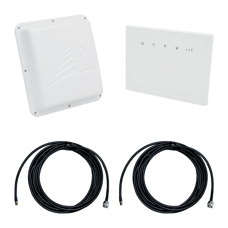 Набор для повышения качества интернет-сигнала сетей 3G и 4G включает в себя маршрутизатор со слотом для SIM-карты Huawei B315, мощную уличную антенну и два пятиметровым кабеля для соединения устройств. За счет работы антенны и роутера в режиме MIMO удается существенно повысить качество и пропускную способность соединения с вышками связи оператора.