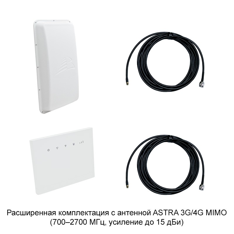 Производительности комплекта хватит, чтобы принять сотовый сигнал от базовой станции, расположенной на расстоянии 5–15 км. Функция MIMO дополнительно стабилизирует соединение за счет работы сразу в двух параллельных каналах радиосвязи. Доступно несколько вариантов набора с антеннами разной мощности.