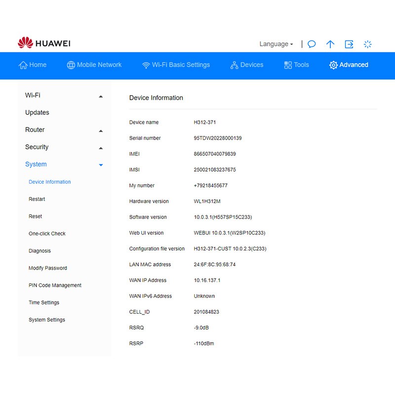 Роутер Huawei 5G CPE Win (H312-371) — спецификации [PDF, ~836Kb]