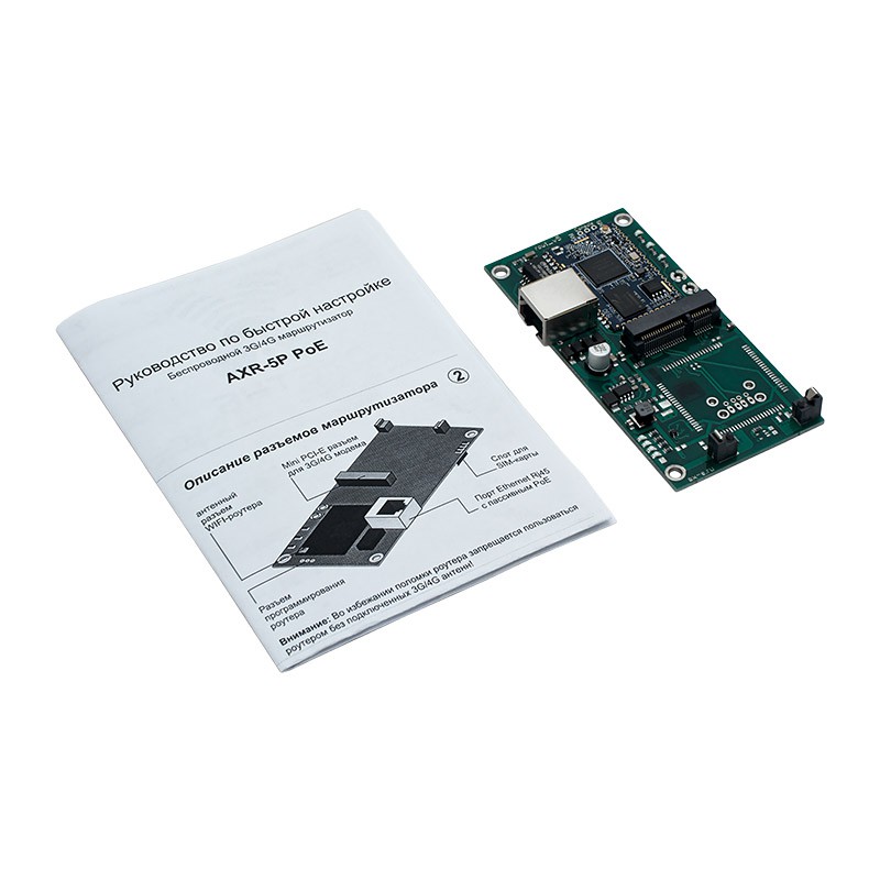 AXR-5P PoE — это бескорпусный WiFi-маршрутизатор с интерфейсом mini-PCIe для установки 3G/4G-модема. Решение в формате печатной платы может быть легко интегрировано в гермобокс уличной 4G-антенны, автоматизированную систему или корпус индивидуальной конфигурации. Роутер применяется для создания собственных кастомизированных продуктов.