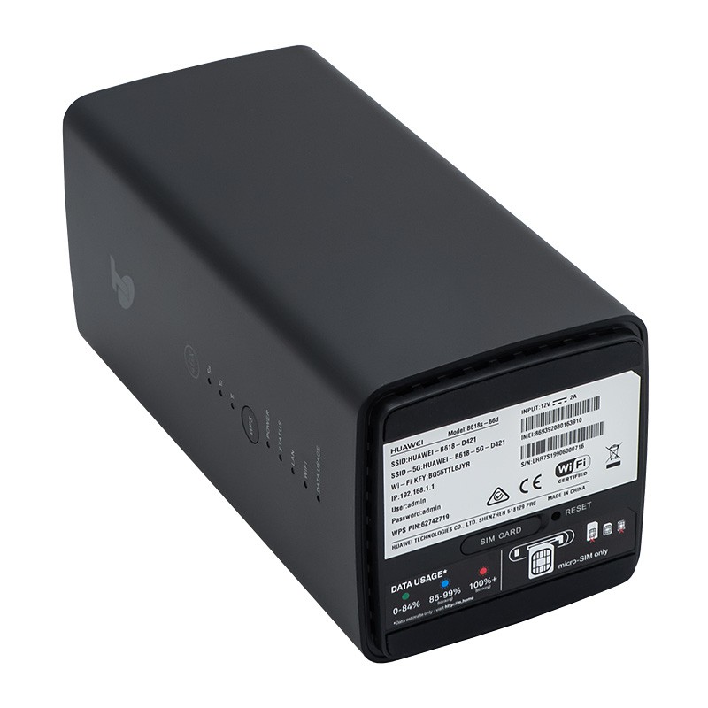 В нижней части корпуса расположен слот для карты формата Micro-SIM. Обеспечена совместимость с ведущими операторами сотовой связи и мобильного интернета, такими как МегаФон, Билайн, МТС и Tele2. Отверстие для установки карты закрывается крышкой, что предотвращает попадание пыли в корпус устройства. На передней панели Huawei B618 расположена панель светодиодных индикаторов, информирующих пользователя о состоянии подключения и мощности принимаемого сигнала.