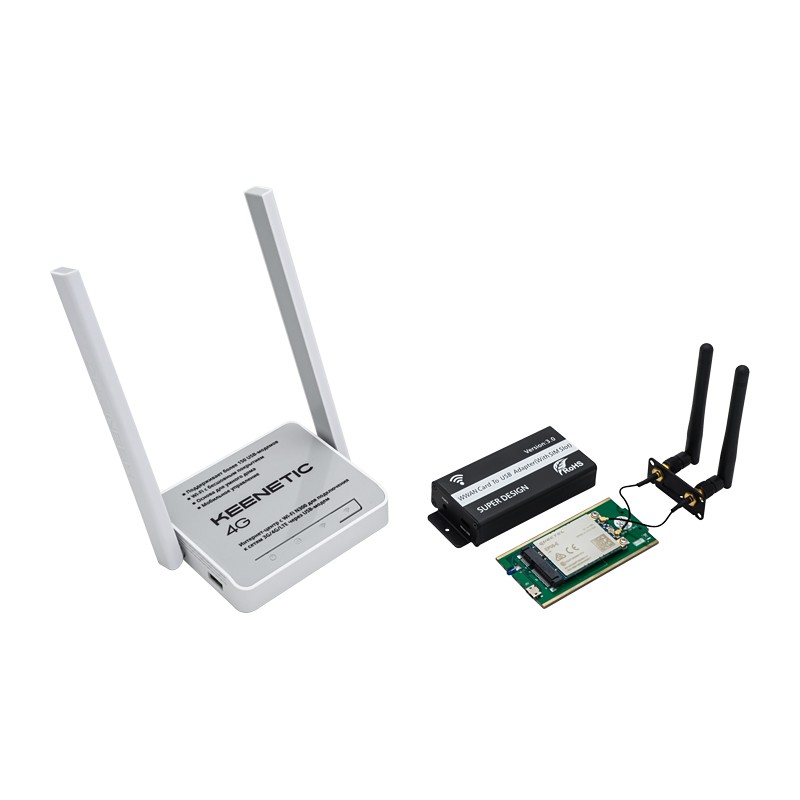 Модем полностью совместим с комплектным роутером Keenetic 4G и не требует отдельного питания. Программное обеспечение роутера предварительно настроено для совместной работы с модемом, поэтому набор может использоваться «из коробки» без необходимости настройки веб-интерфейса и установки дополнительных модулей.
