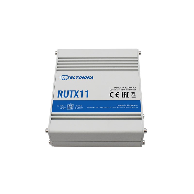 Teltonika RUTX11 - компактный всепогодный LTE-маршрутизатор поколения LTE-A Cat6, предназначенный для профессиональных инсталляций. Базируется на RutOS - кастомном системном ПО, созданном на основе OpenWrt. Поддерживает 2 SIM-карты для обеспечения резервирования и агрегации каналов связи, обеспечивает скорость доступа в Интернет по LTE до 300 Мбит/с. Оснащен 4-мя гигабитными портами RJ45 (1 x WAN, 3 x LAN), трекинговым приемником с поддержкой GLONASS, BeiDou, Galileo и QZSS, портом USB 2.0, модулем WiFi 2.4 / 5 GHz 802.11b/g/n/ac Wave2 с поддержкой MU-MIMO и модулем Bluetooth для дистанционного управления устройством.