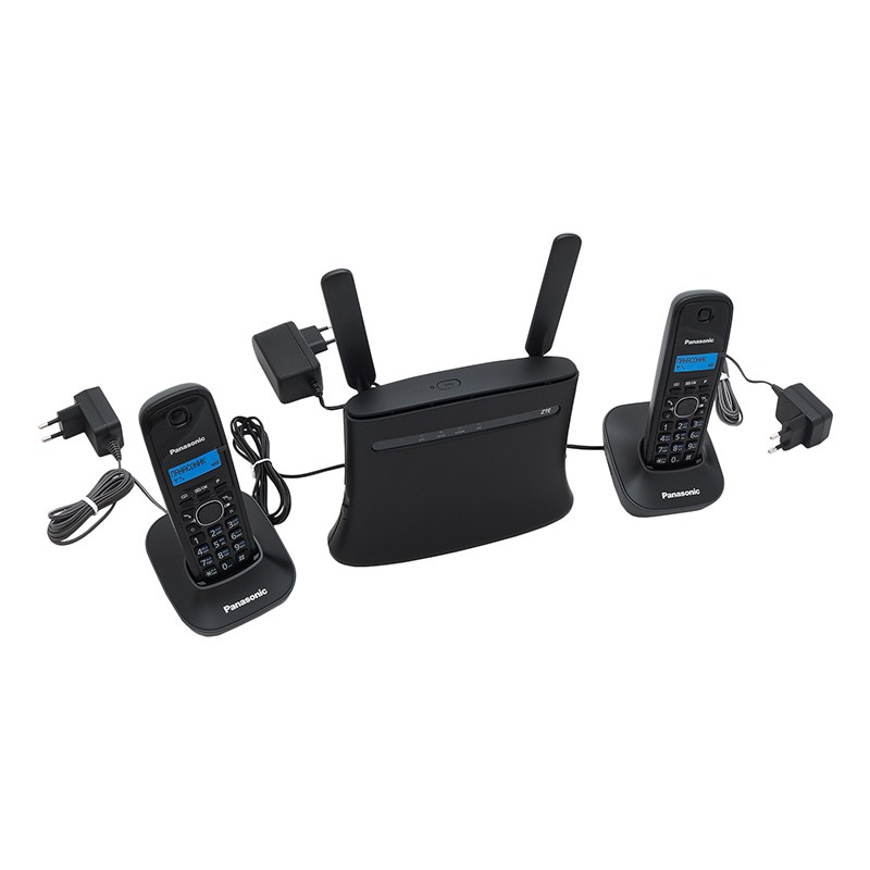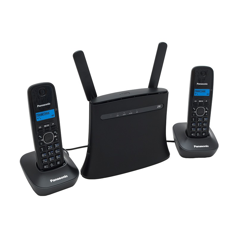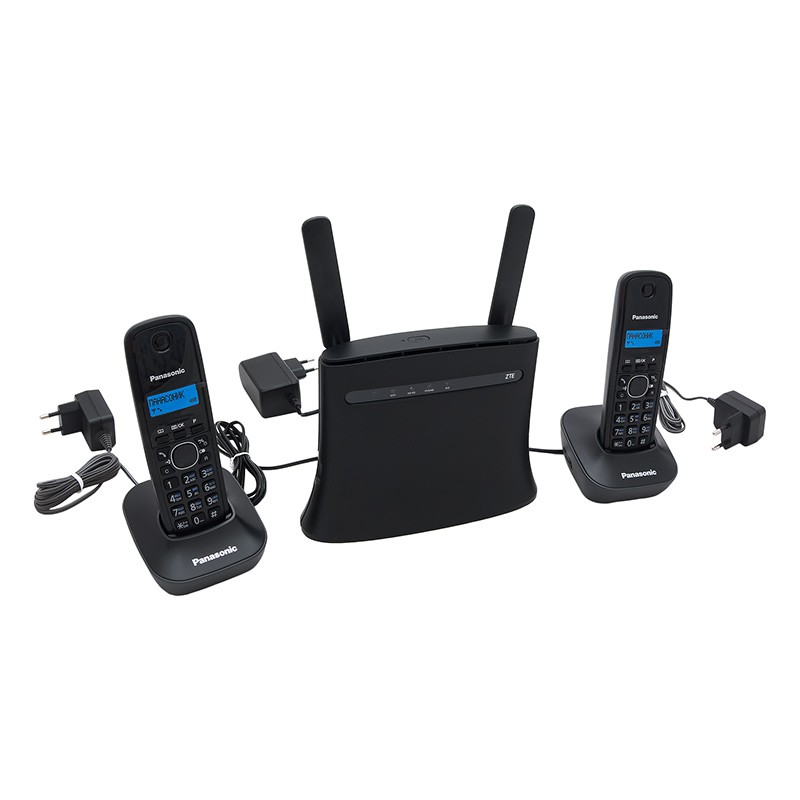 Готовый комплект для дома и небольшого офиса, состоящий из роутера ZTE MF286 и двух телефонов DECT-стандарта Panasonic KX-TG1611RUH. Основная сфера применения комплекта — обеспечение телефонной связи на объектах, где отсутствует возможность подключения проводного телефона или иных видов телефонии, кроме сотовой. Роутер ZTE со встроенным модемом и GSM-шлюзом позволяет использовать для звонков стандартные SIM-карты любых российских операторов: Мегафон, Билайн, МТС, Tele2.