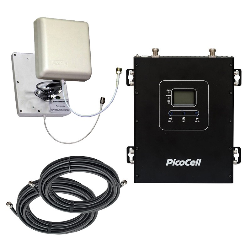 Комплект усиления GSM, 3G и 4G от PicoCell улучшает качество сотовой связи и мобильного интернета для всех абонентов в зоне действия репитера. Благодаря набору из антенн, кабельных сборок и репитера, удается повысить доступность мобильного сигнала в квартирах, коттеджах, офисах, мини-маркетах, небольших цехах, ангарах и спортивных сооружениях. Производительность набора напрямую зависит от уровня принимаемого сигнала и планировки помещения.