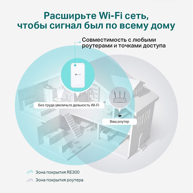 RE300 подключается к роутеру по Wi-Fi и увеличивает покрытие там, где роутер не справляется. Пользуйтесь мощным и надёжным Wi-Fi на скорости до 300 Мбит/с на 2,4 ГГц и до 867 Мбит/с на 5 ГГц во всем доме и забудьте о "мертвых" зонах раз и навсегда!