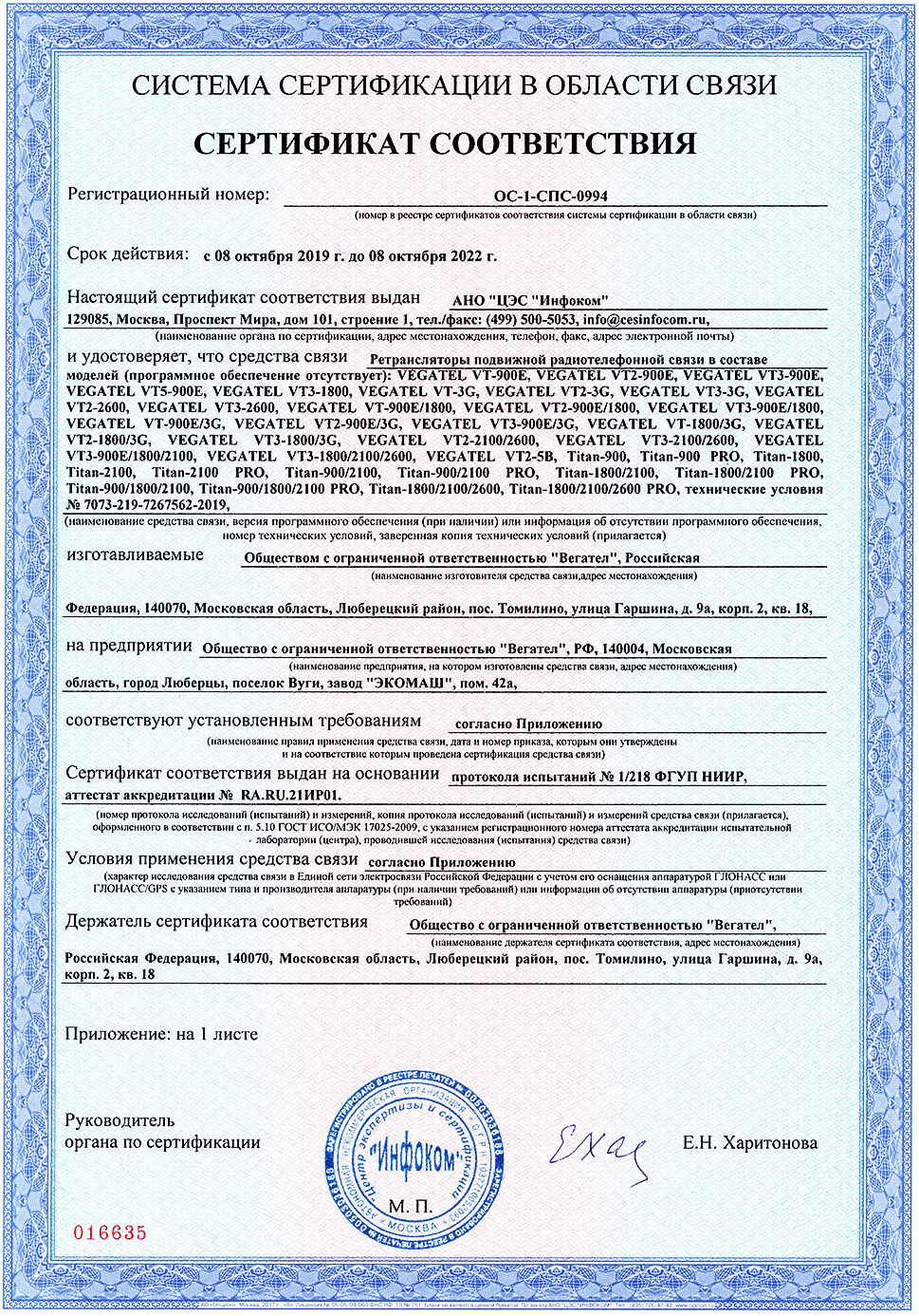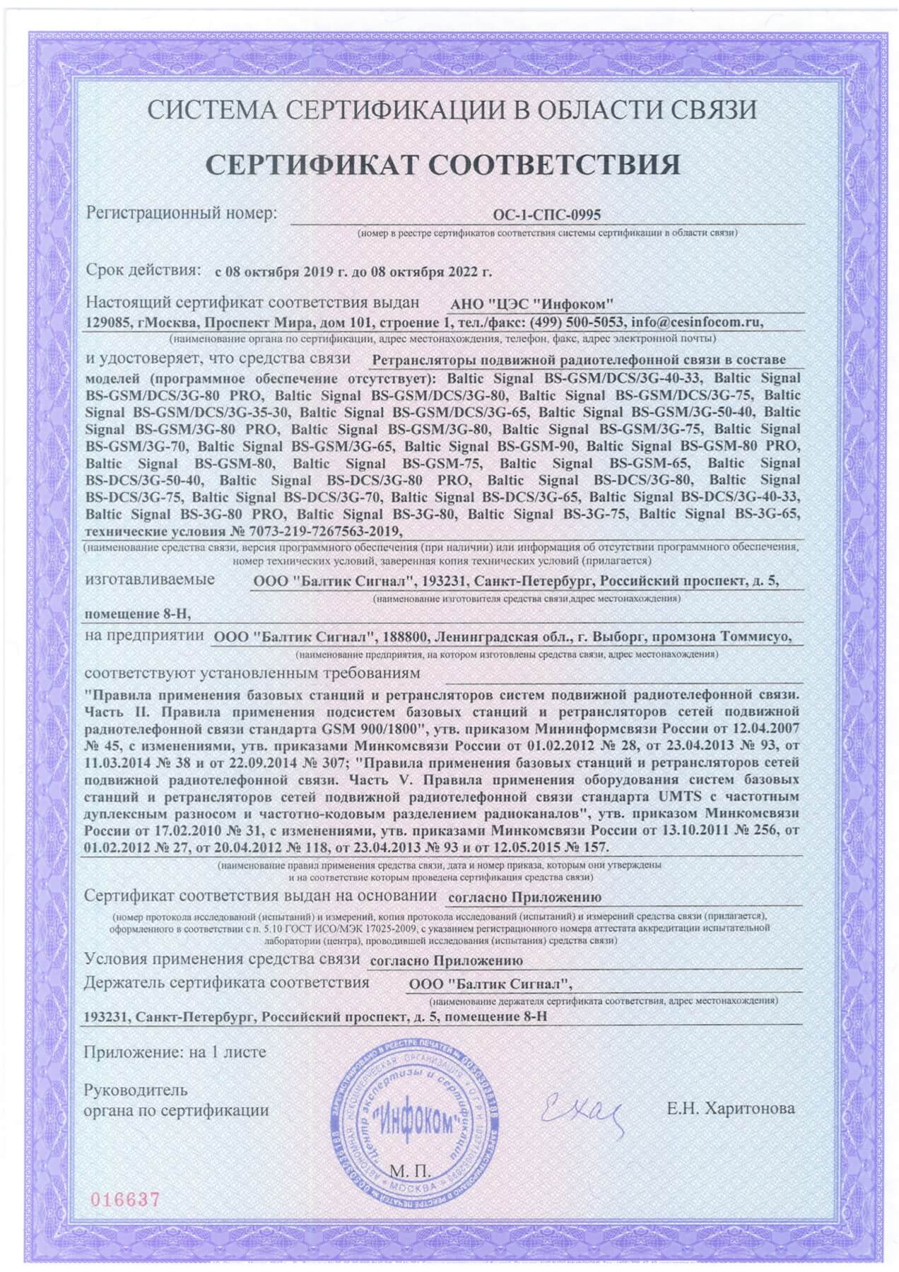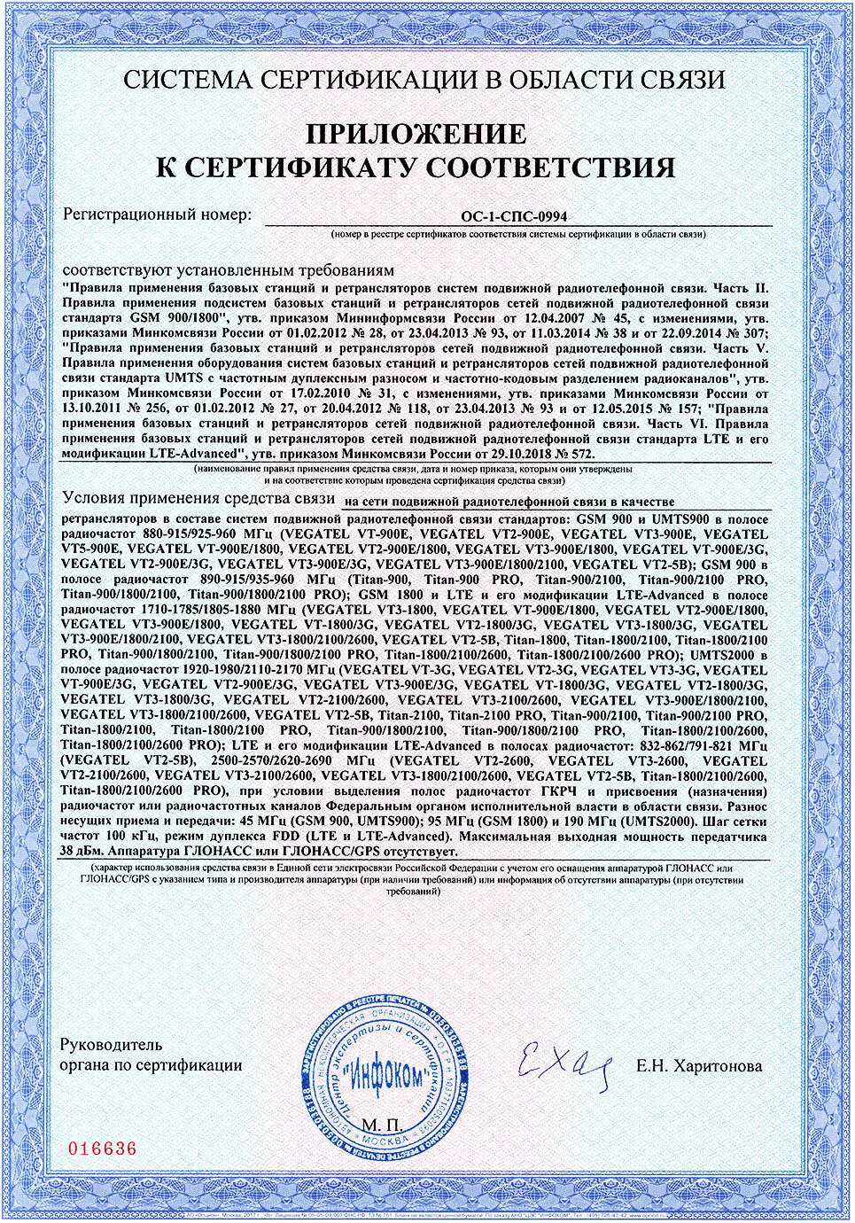 Все крупнейшие отечественные производители репитеров сотовой сети имеют сертификаты в области связи, что гарантирует их соответствие установленным правилам и требованиям Минкомсвязи. Приобретая продукцию нижеприведенных производителей, вы можете быть уверены, что покупаете сертифицированное оборудование!